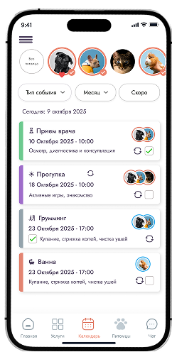Наш умный календарь для питомцев — ваш персональный помощник по уходу за животным.